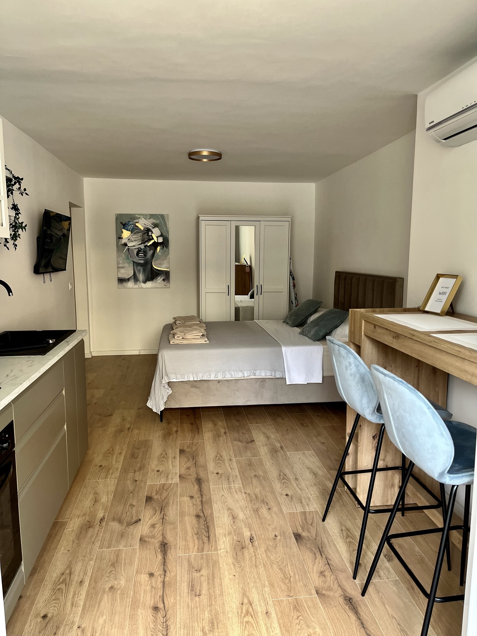 Novo uređeni studio apartman Fiore idealan za dvoje ljudi koji se nalazi u centru Pule s dostupnim parkingom te plažom u blizini. Apartman se sastoji od spavaće sobe, kupaonice, kuhinje te balkona za uživanje.